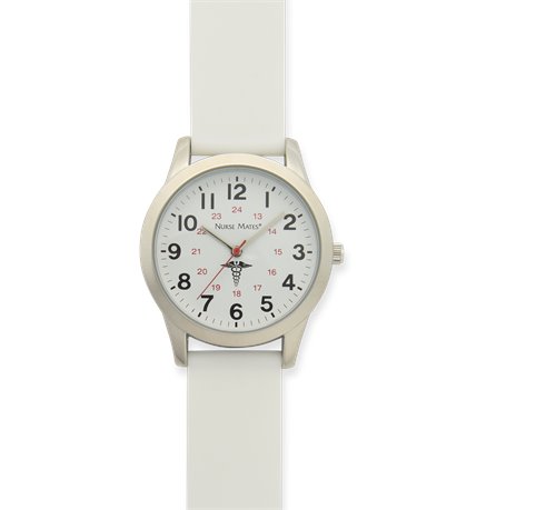 Battery Operated Sweep Watch with high torque sweep second hand mechanism. 1 1/2" case size, military time and water resistant construction. Easy care silicone strap. Great for students!